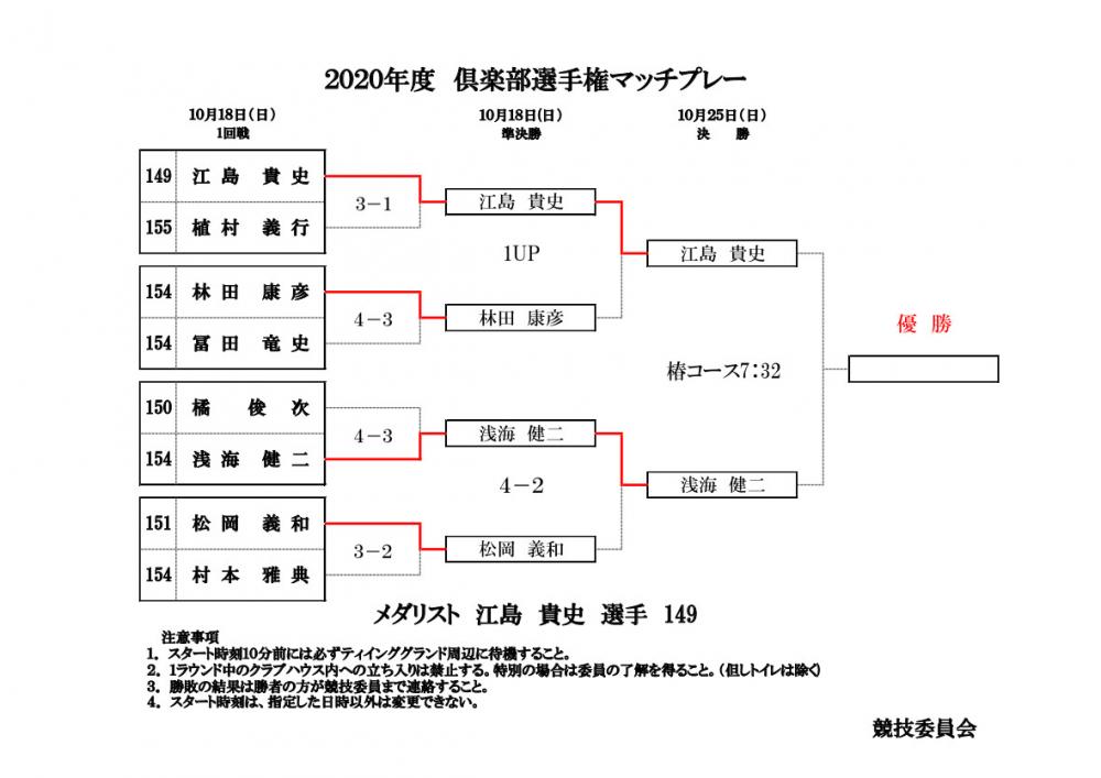 過去、倶楽部選手権3回、シニア選手権6回、グランドシニア選手権1回を獲得した村本 雅典選手と初のファイナリストとなった西田 由雄選手との決勝戦は、村本選手が西田選手を4and2で制し2回目の優勝を果たしました。